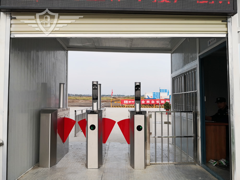 四扇大门+几字门框+鸟瞰图框架+值班室+人脸识别+翼闸+卷闸门+翼闸旁小门和门禁